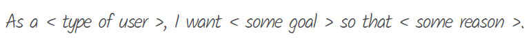 The typical format of a user story is as follows: